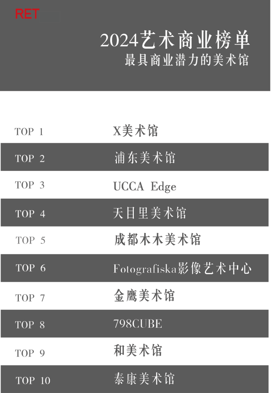 鉴于这一时代背景下,近几年全球范围内新锐美术馆如雨后春笋般涌现,其中不乏一些成功地将艺术与商业相互融合并创新实践的佼佼者。为此,RET艺术携手81位艺术界与商界的专家人士,依据开馆选址策略、所在城市的发展潜力、展览项目的影响力及其覆盖区域等八大核心指标,系统性地评估了国内(仅大陆地区)5年内新近开馆的年轻美术馆群体。