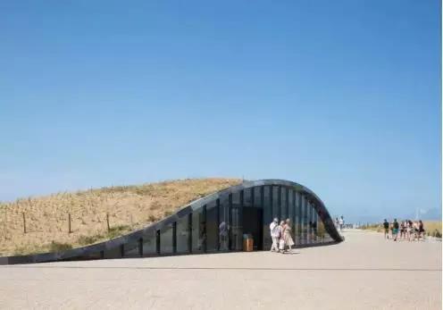 为了保证美观,行人出入口均沿着沙丘走势被设计成弧形,略高于路面但又完美融入沿海景观之中。白天,玻璃门辅助增强出入口照明;夜晚,内部照明则同时充当路灯的角色,可谓一举两得。