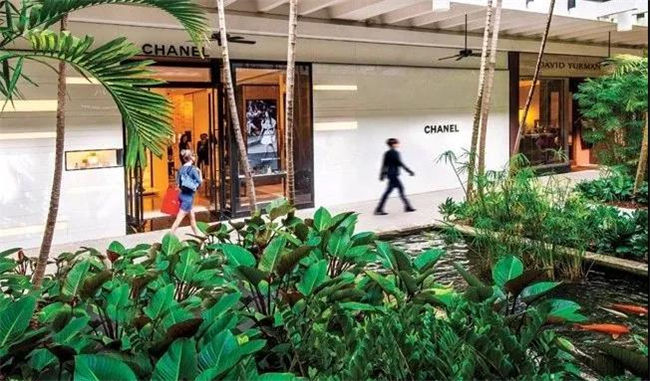 在这里,整个购物环境自然清爽,充满艺术氛围,其中亮点就是贯穿上下两层的采光井和其中种植的棕榈等本地植物。事实上,Bal Harbour Shops品牌门店之间的空间并不宽敞,但自然的设计主题,以绿色植被布满整个空间,却充分渗透着迈阿密这座城市的肌理。