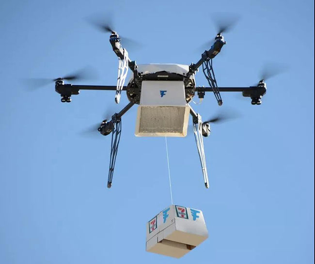 日本便利店品牌7-11发起使用的无人机配送方式在美国里诺试行,消费者在几分钟之内便可收到下单购买的物品,将“便利店”这个名字所传达的信息表现到了极致。