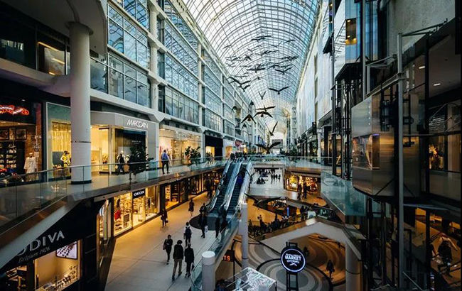 商场常常将活动场地定在地面上,把售票和换取礼物等放在地下商场,实现地面人流导入,再通过内部布置的观景电梯、自动电梯、挑台 、天桥、喷水池以及大量观赏植物和雕塑,提升人们的购物体验。