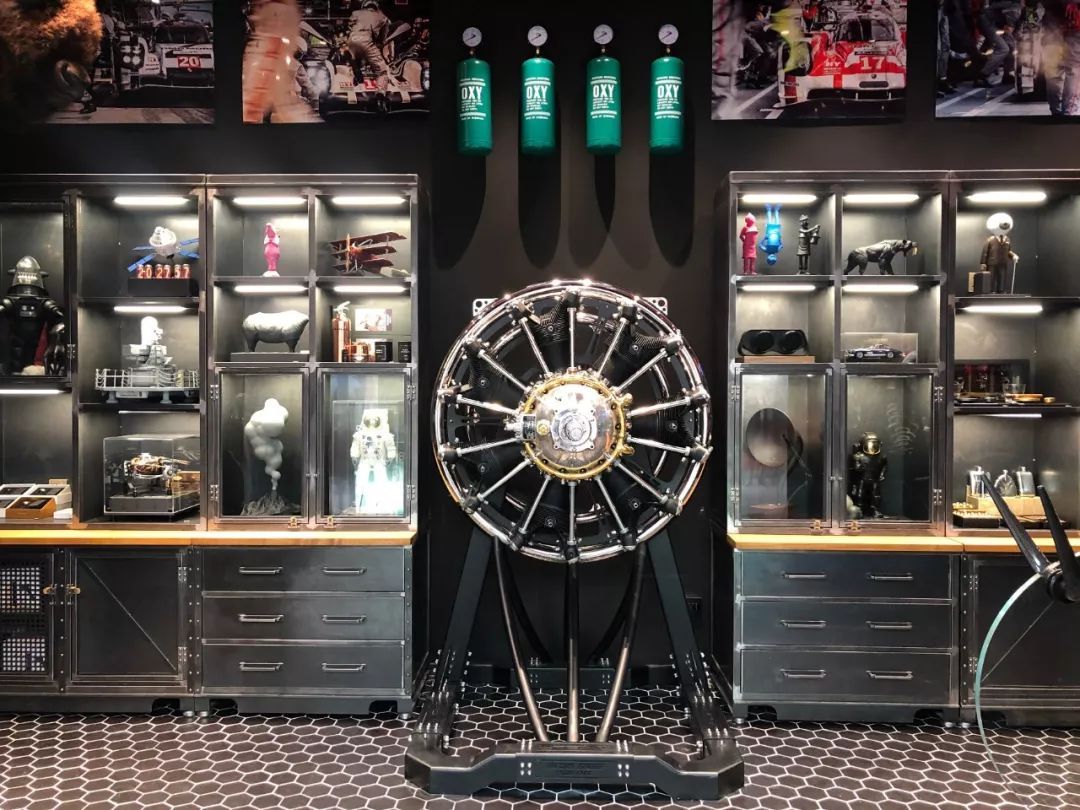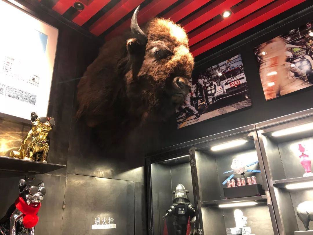 又如三层时空隧道尽头的科技产品买手店 DRIVEPRO,其店内的引擎原件来自于真实的飞机,挂于墙上的牛头也是真实标本。