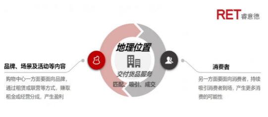 [购物中心的商业本质:是基于地理位置下整合品牌、场景及活动等内容,通过持续运营吸引、匹配和促进成交的流量运营平台,本质上需要购物中心运营者促进和实现内容与消费者间的有效匹配和交易转换。在交易层面上,由于购物中心并不是最终成交的商品或者服务的所有人,而是作为为交易提供场所的第三方而存在,所以购物中心是商品与服务的交付终端渠道之一,同时也是品牌与目标消费者建立品牌体验的关键场景。]