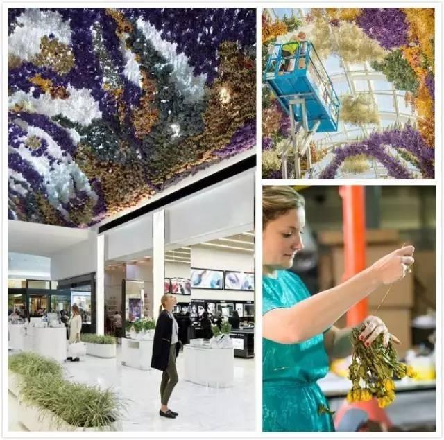 此外,伊斯特兰购物中心还在化妆品区域的屋顶倒挂了15万朵色彩斑斓的干花,不仅让购物的氛围更加轻松、愉悦,也有助于俘获女性消费者的芳心,让其在这里待得久一点,并且时不时会想要回来,实现更多的购买。