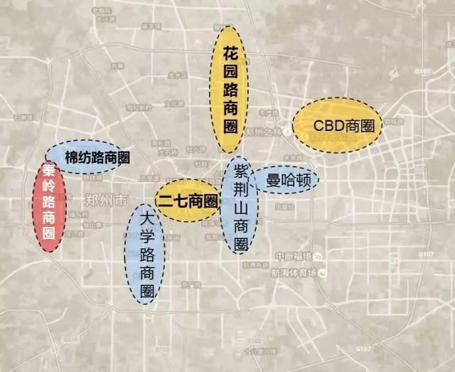 秦岭路、大学路、棉纺路商圈、曼哈顿等多为依托于大型商业项目带动形成的片区型商业中心,未来郑州这种片区型商业的发展趋势会强化,比如经开区、高新区、郑州东南部等区域目前均未形成片区的商业中心。