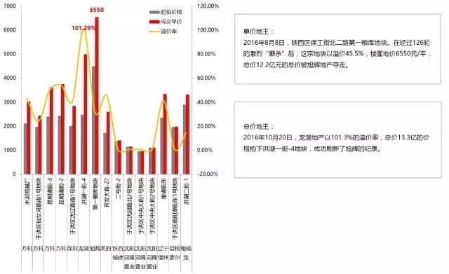 最为瞩目的是,2016年度沈阳的“单价地王”和“总价地王”均来自沈阳的西城区域。直接反映了沈阳西城区域的受关注度。